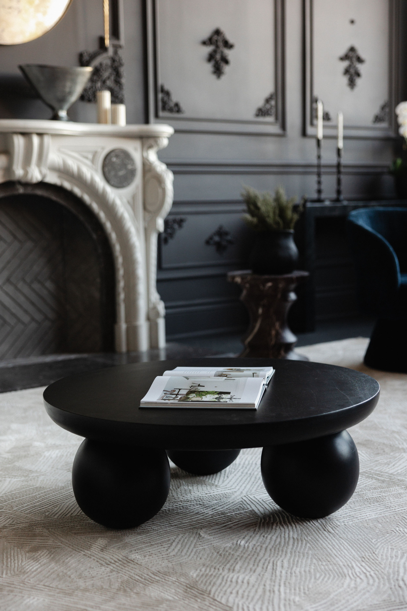Ornaments in shimmering whites, golds, and luminous metallics are carefully chosen to thread harmony between the rich black walls and the soft white finishes, creating a look that is both festive and restrained. Their subtle shine adds a touch of celebratory sparkle without overwhelming the room’s quiet sophistication.