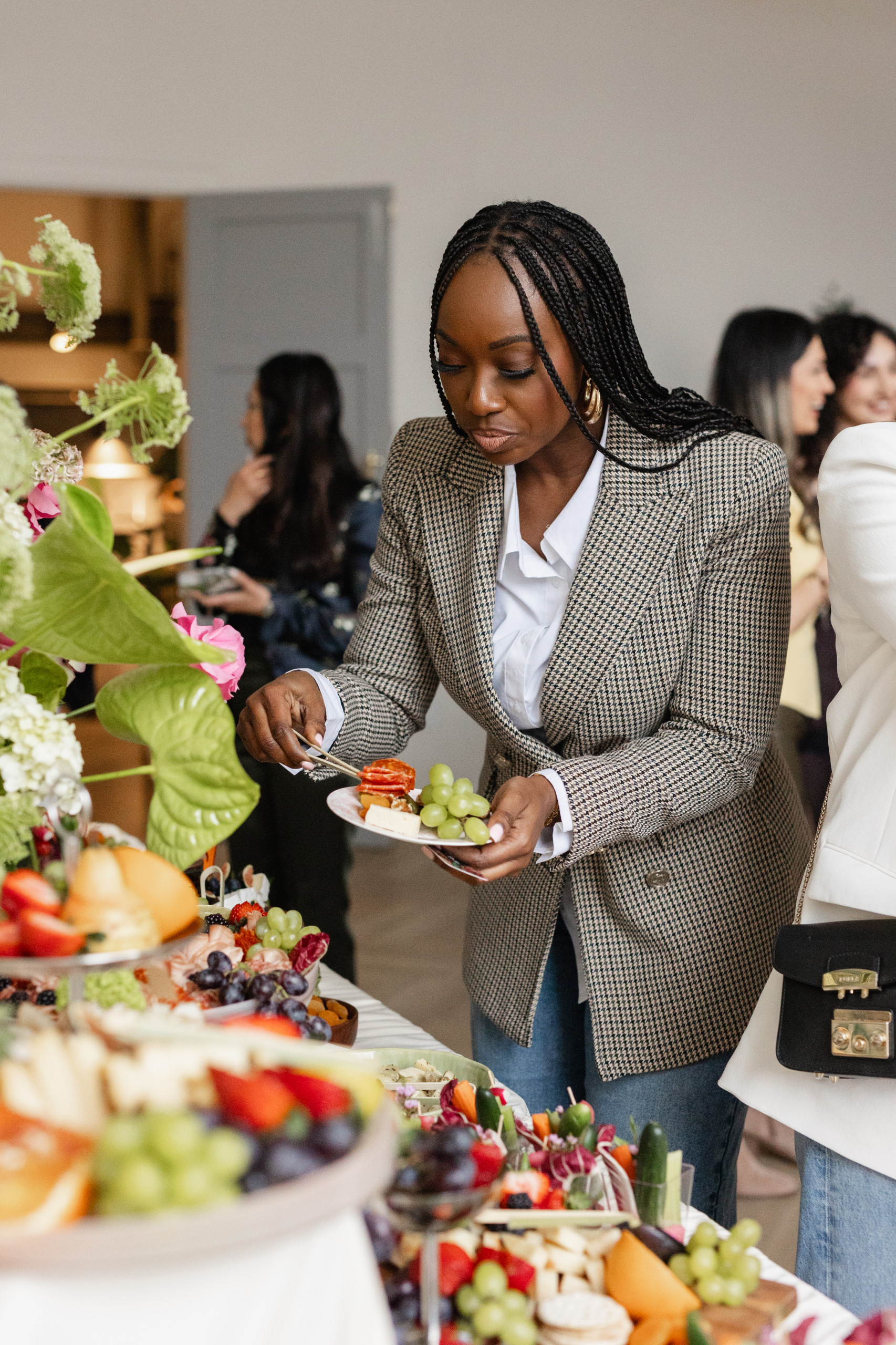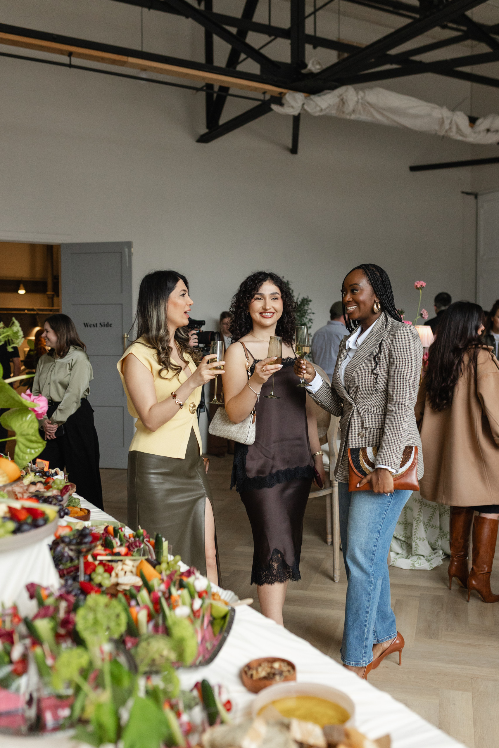 The evening began in our West Side studio with welcome drinks, a full bar, a beautiful charcuterie stations, and passed canapés. Guests had time to settle in, reconnect, and ease into the flow of the night.