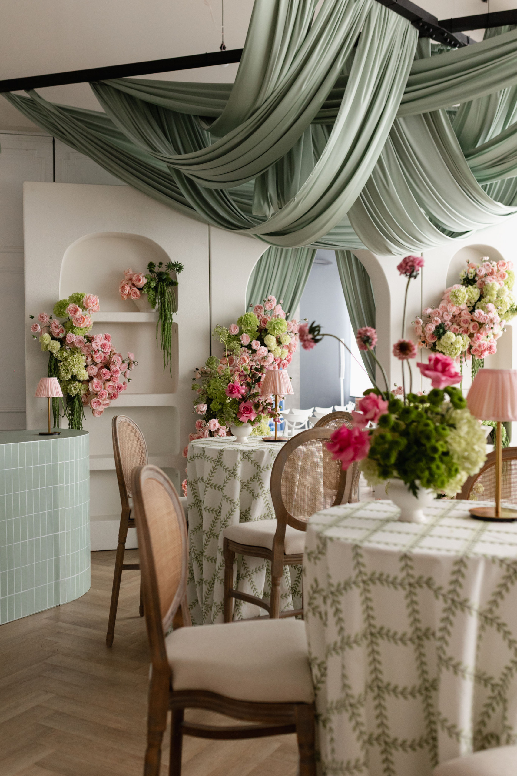 The event flow was intentionally planned around each studio space and its seasonal installations. Every event detail  in the cocktail reception from the linens to the florals was accentuated by the existing “Atelier Spring” aesthetic.