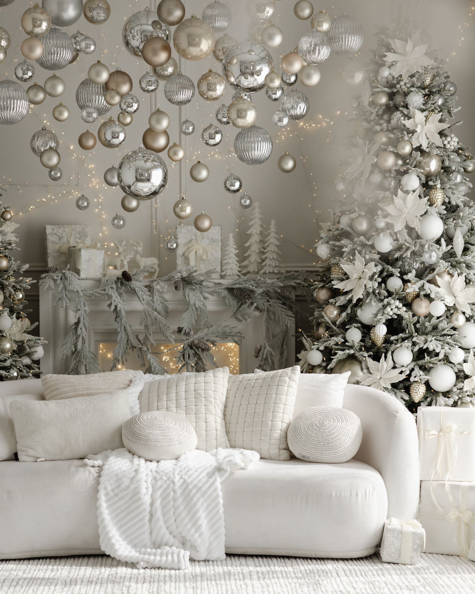 ‘Winterglow’ in the Nest is a winter dreamscape, where snow-dusted trees, shimmering ornaments, and soft neutral tones create a warm, inviting glow that captures the heart of the holidays.
